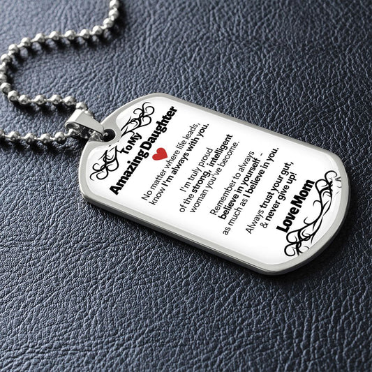 To My Amazing Daughter - I'm Always With You - Love Mom - Military Style Dog Tag Necklace