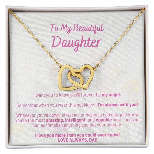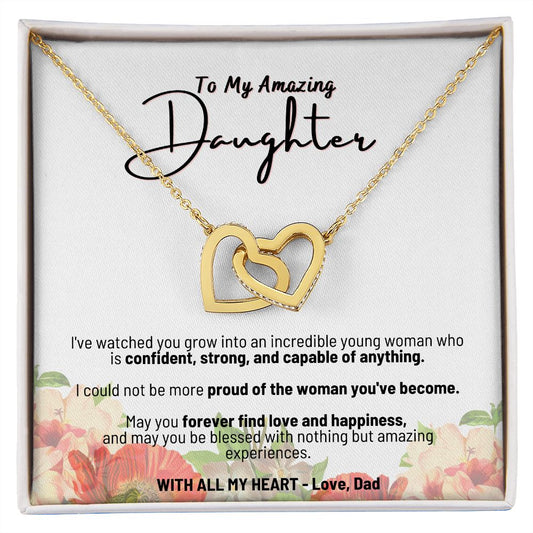 To My Amazing Daughter - With All My Heart - Love Dad - Interlocking Hearts Necklace