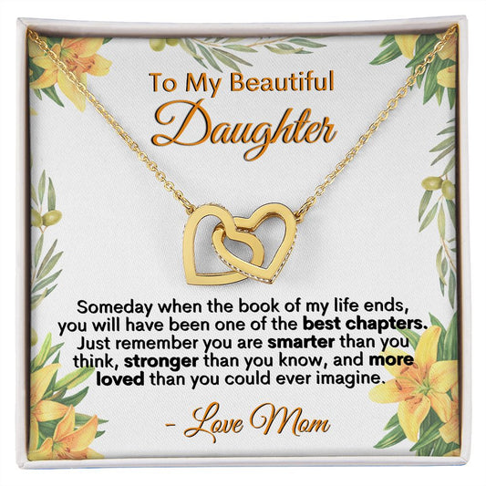 To My Daughter - You're More Loved Than You Could Ever Imagine, Love Mom - Interlocking Hearts Necklace