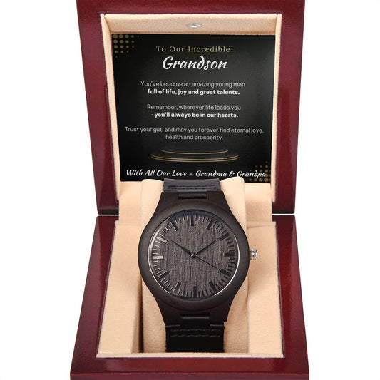 To Our Incredible Grandson - You'll Always Be in Our Hearts - Wooden Watch