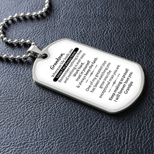 Grandson - Keep Making Us Proud - I will forever love you - Grandma - Military Chain Dog Tag Necklace