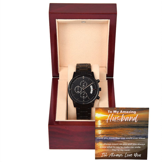 To My Amazing Husband - I'll Always Love You - Black Chronograph Watch