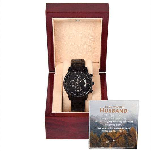 To My Amazing Husband - I Love You To The Moon and Back - Black Chronograph Watch
