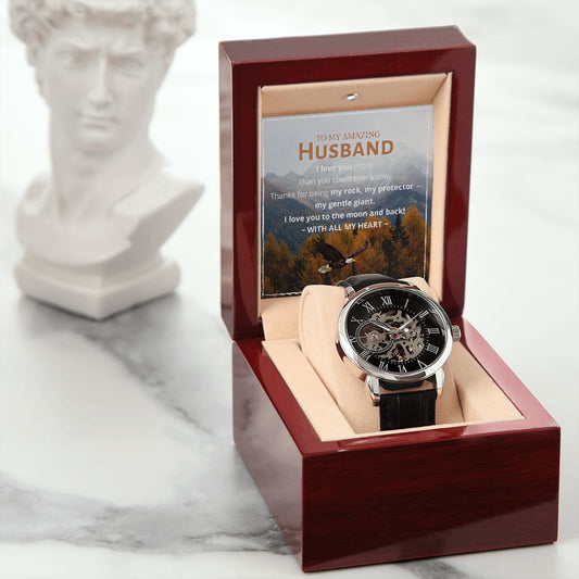 To My Amazing Husband - Where Eagles Fly - I Love you to the moon and back - Men's Openwork Watch