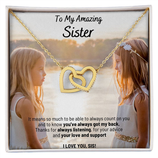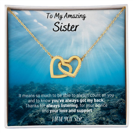 To My Amazing Sister - Thanks For Always Listening - Interlocking Hearts Necklace
