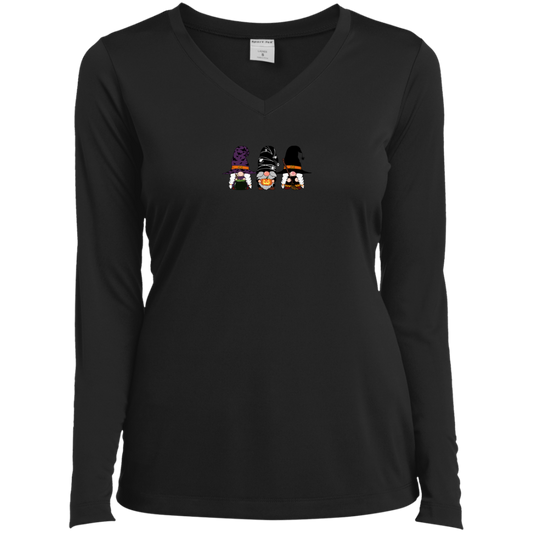 Three Little Gnomes - Halloween Ladies’ Long Sleeve Performance V-Neck Tee