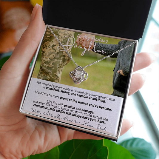 To My Badass Daughter - Remember...This Soldier Will Always Have Your Back - Love Knot Necklace - Love Dad