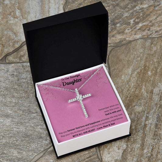 To Our Beautiful Daughter - CZ Cross - Remember when you wear this cross, God is with you!
