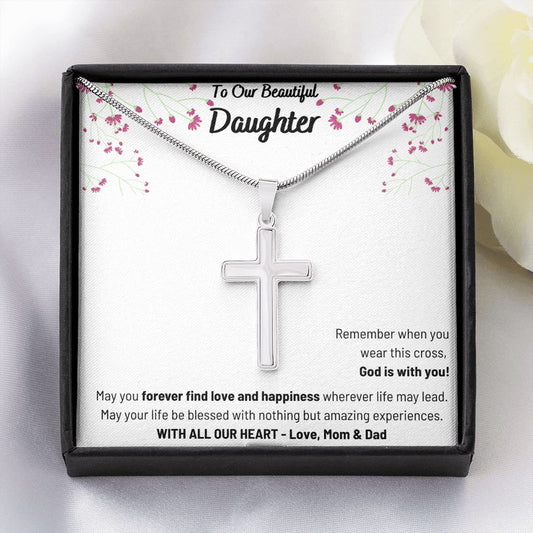 To Our Beautiful Daughter - Remember when you wear this cross, God is with you - Stain Steel Cross Necklace and Chain