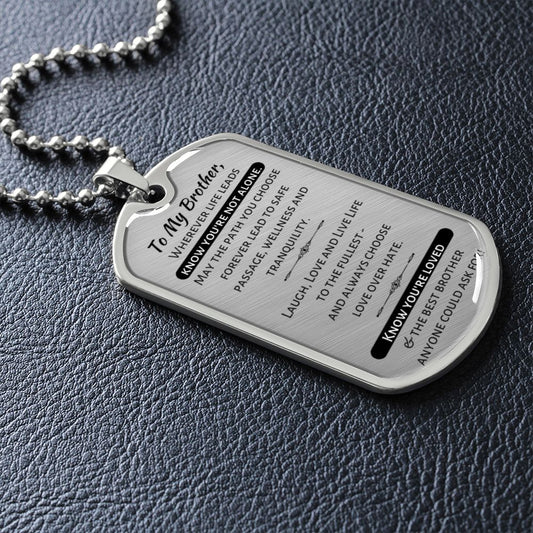 To My Brother - Know You're Not Alone...Know You're Loved - Military Dog Tag Necklace
