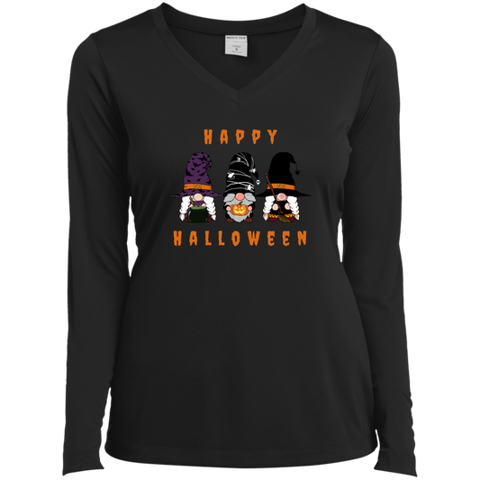 "Happy Halloween" Three Gnomes - Ladies’ Long Sleeve Performance V-Neck Tee