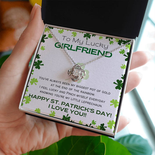 To My Lucky Girlfriend - Shamrock Love Knot Necklace - Happy St. Patrick's Day